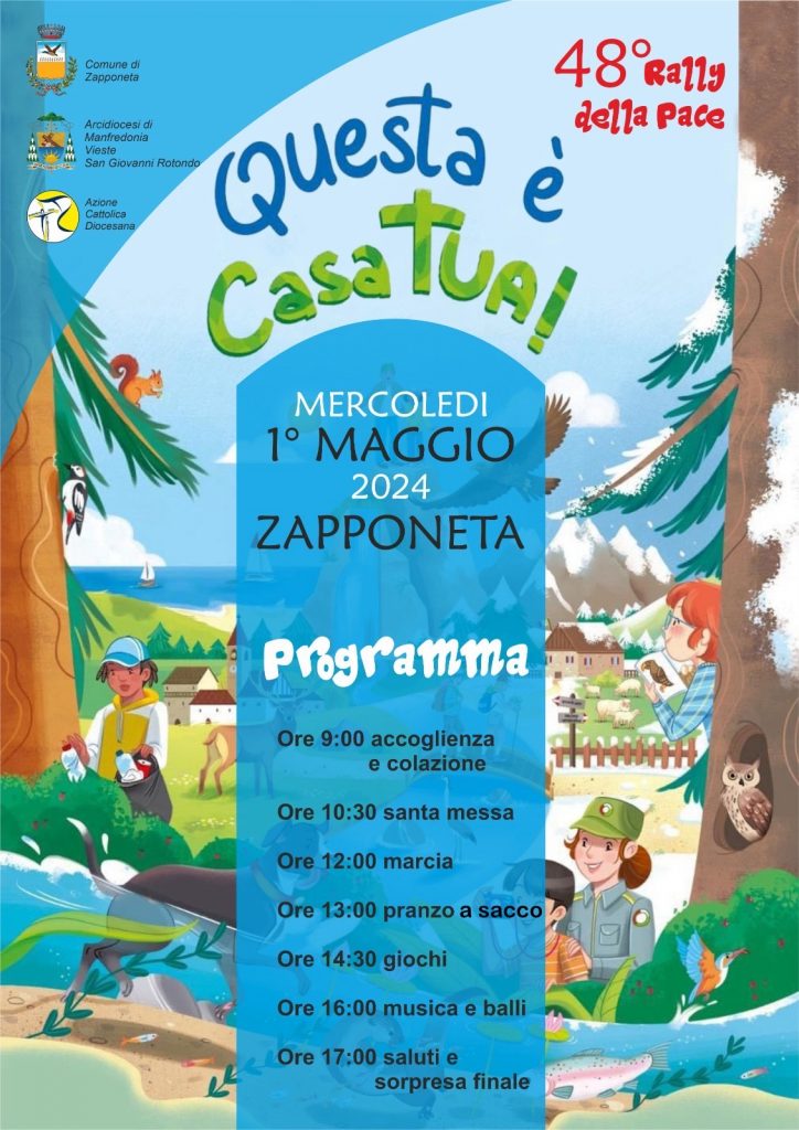 “Questa è casa tua!”. Ed è provvidenziale che ci si incontri per il Rally proprio il 01 maggio, festa di San Giuseppe Lavoratore, papà di casa. Questo ricordo ci richiama all’impegno, ed anche la fatica di costruire un mondo dove ognuno possa seminare liberamente i propri talenti; lavorare per far fiorire il “noi” che si fa casa accogliente di ogni “io”; realizzare uno spazio in cui la fraternità e l’attenzione vicendevole custodiscano e facciano crescere i rapporti e le amicizie. Siamo entrati nell’ambientazione della riserva naturale con meraviglia e stupore, contemplando nello splendore del creato (e noi in Gargano siamo pienamente immersi) una strada privilegiata per arrivare al Signore e sentirci più fratelli, eredi della casa comune che tutti siamo chiamati a rispettare e trattare con amore, evitando ogni gesto che possa sfigurarne la bellezza. (Mons. Franco Moscone)