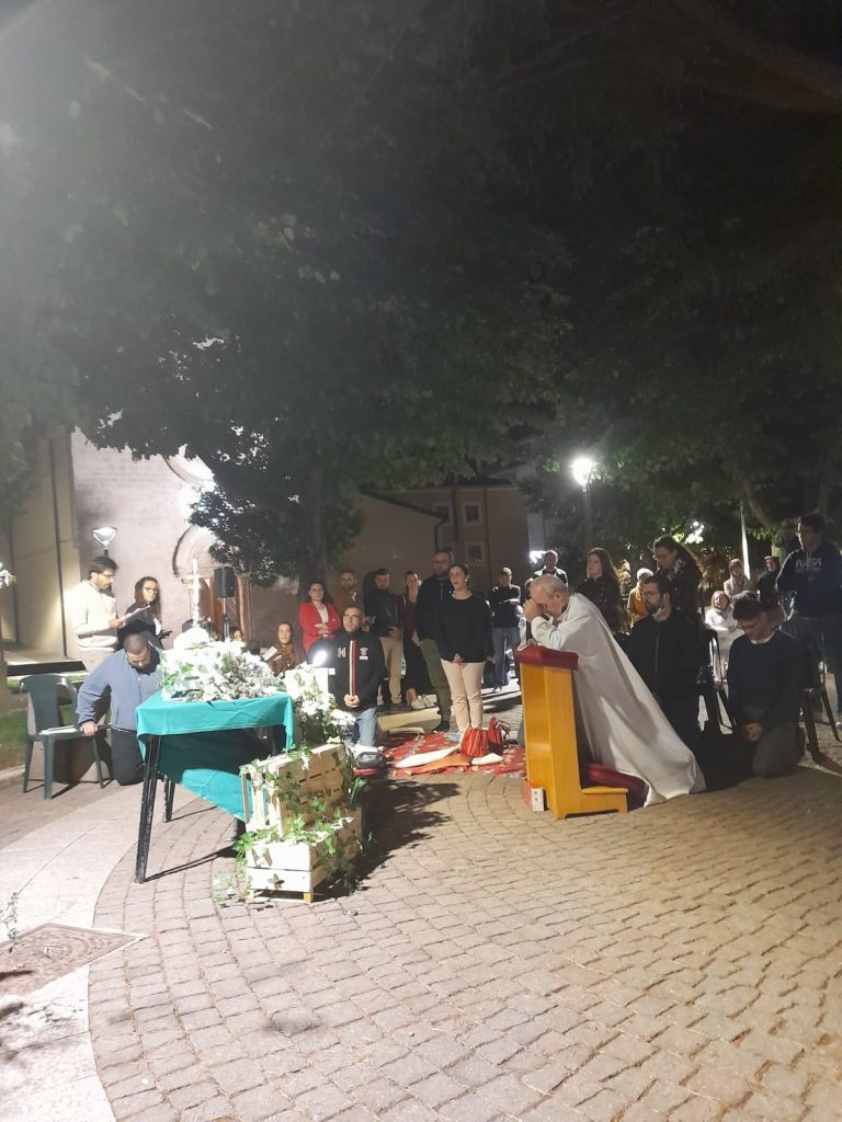 Ispirato dal vento presente nella serata, padre Franco lo ha identificato con la presenza dello Spirito Santo che, come una carezza, si fa presente.