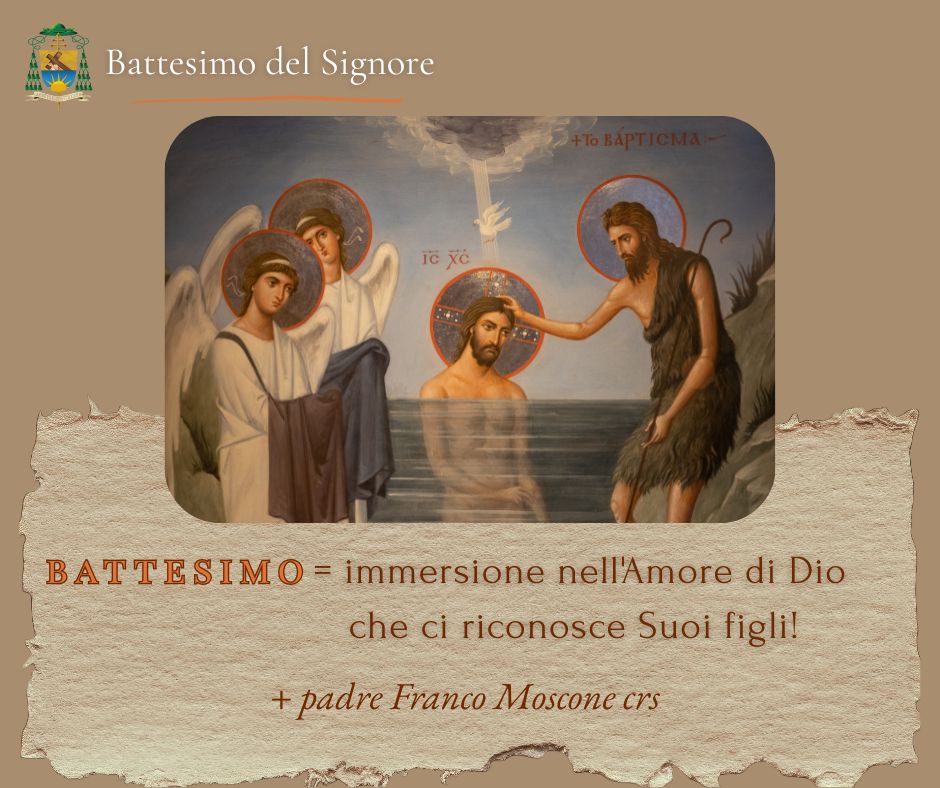 10 Gennaio 202610 Gennaio 2026in evidenzaNewsIl pensiero di padre Franco MosconeBattesimo del Signore – 2026 “BATTESIMO = immersione nell’Amore di Dio che ci riconosce Suoi figli!” + padre Franco Moscone crs