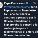 Padre Franco Moscone, in comunione con Papa Francesco, invita a pregare per il Papa emerito Benedetto XVI.