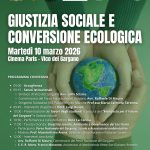 Martedì 10 marzo 2026 si terrà a Vico del Gargano presso il Cinema Paris il Convegno Formativo “Giustizia sociale e Conversione ecologica”. Questo convegno nasce dalla convinzione che ambiente e giustizia sociale siano due facce della stessa crisi, un’unica emergenza che interpella il nostro tempo. Una convinzione oggi entrata con forza anche nel magistero della Chiesa: […]