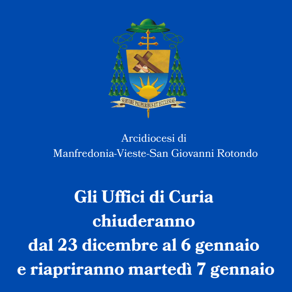 Gli uffici di Curia chiuderanno per le festività natalizie dal 23 dicembre 2024 al 6 gennaio 2025.