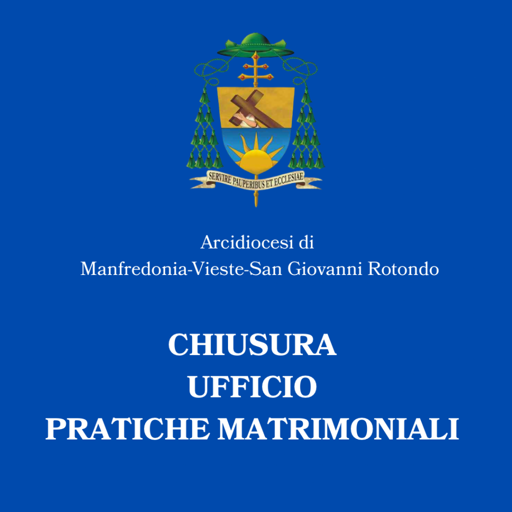 29 Agosto 2025Dagli uffici pastoraliChiusura Ufficio per le pratiche matrimoniali Si comunica che l’Ufficio per le pratiche matrimoniali resterà chiuso i seguenti giorni: lunedì 1° settembre e giovedì 4 settembre.