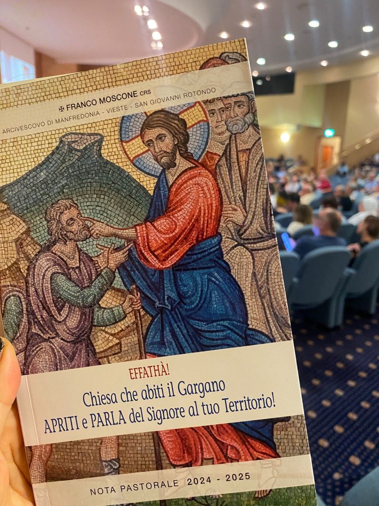 Consegnata oggi, alla comunità di Manfredonia-Vieste-San Giovanni Rotondo, la nuova Nota Pastorale dell’Arcivescovo padre Franco Moscone dal titolo “Effathà! Chiesa che abiti il Gargano APRITI e PARLA del Signore al tuo Territorio!”