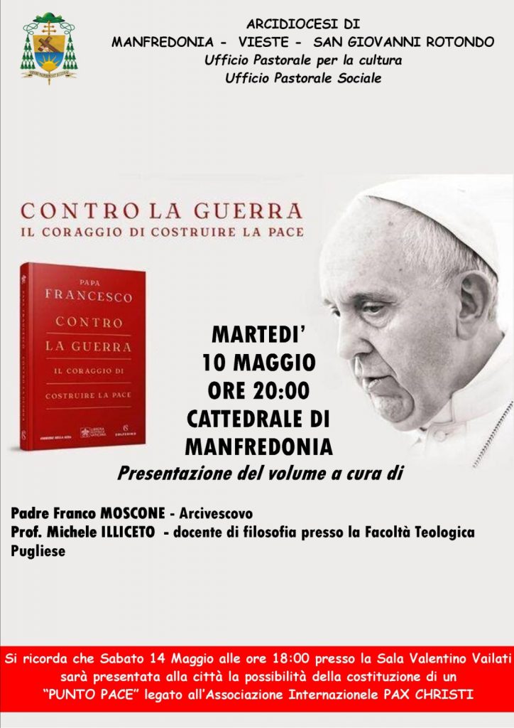 Il libro sarà oggetto di riflessione da parte di padre Franco Moscone, arcivescovo di Manfredonia – Vieste – San Giovanni Rotondo e del prof. Michele Illiceto, docente di filosofia presso la Facoltà Teologica Pugliese, martedì 10 maggio, nella Cattedrale di Manfredonia.