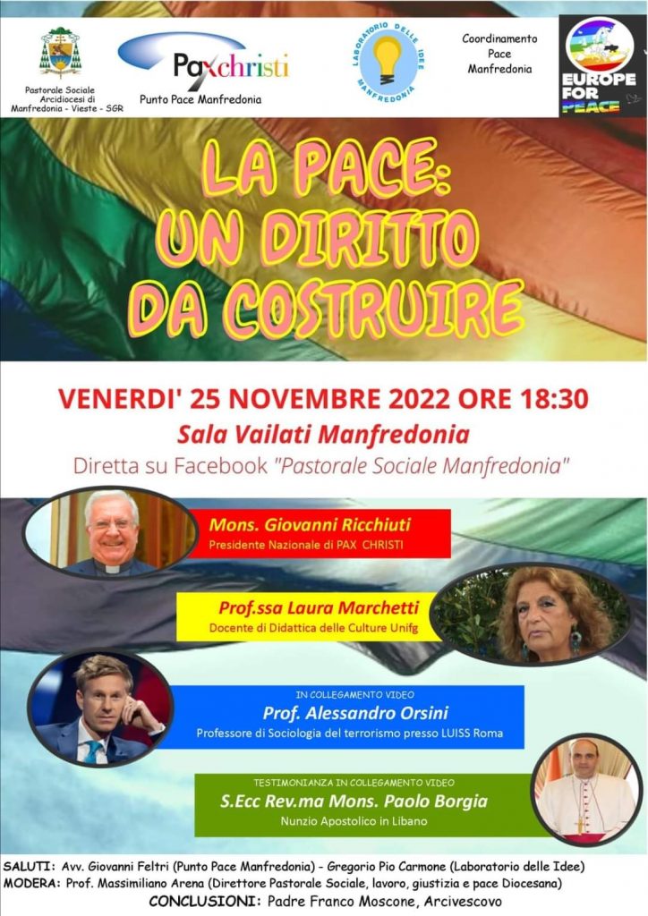 Venerdì 25 novembre 2022, incontro sul tema “La pace: un diritto da costruire”.