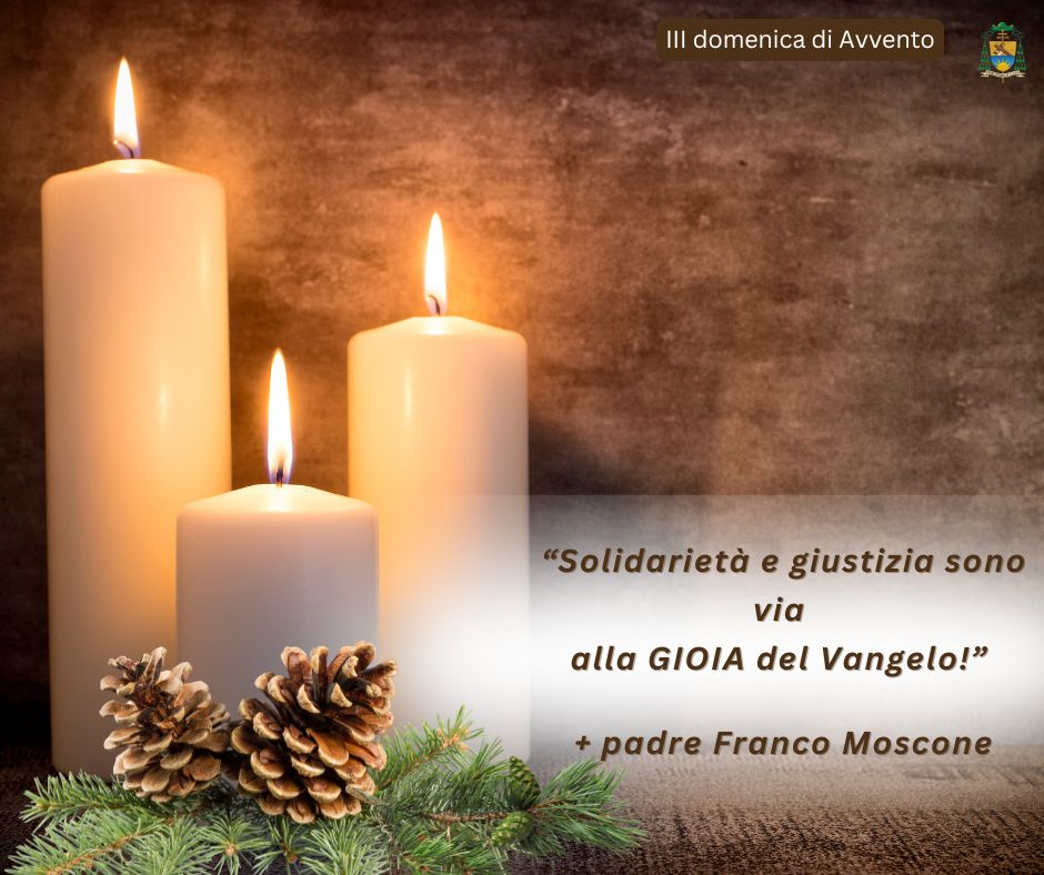 14 Dicembre 202413 Dicembre 2024in evidenzaNewsIII domenica di Avvento 2024Il pensiero social di padre Franco Moscone “Solidarietà e giustizia sono via alla GIOIA del Vangelo!” + padre Franco Moscone