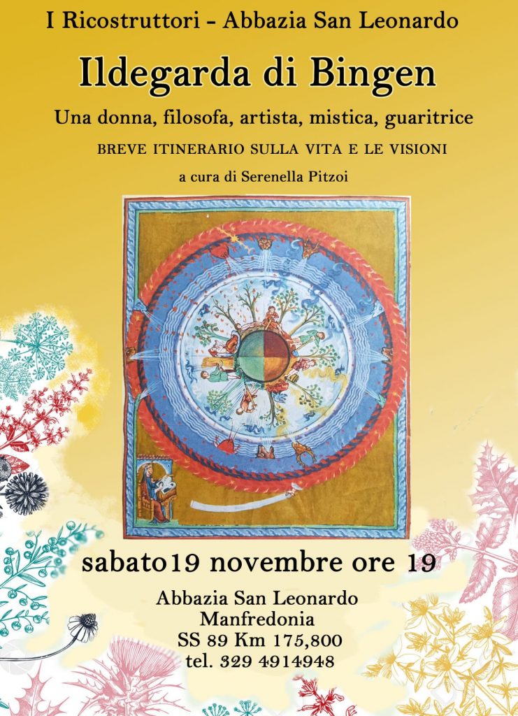 Si terrà sabato 19 novembre 2022, alle ore 19 nell’Abbazia San Leonardo, un incontro sulla figura di Ildegarda di Bingen, a cura di Serenella Pitzoi.
