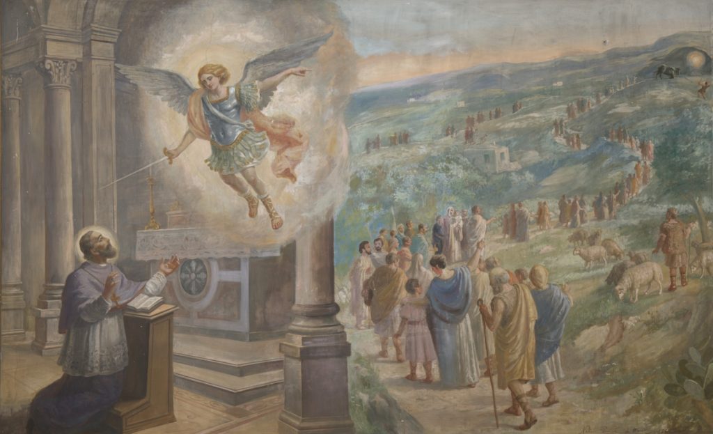 N. Penati, Apparizione dell’Arcangelo Michele al vescovo Lorenzo, 1940, Cattedrale di Manfredonia.