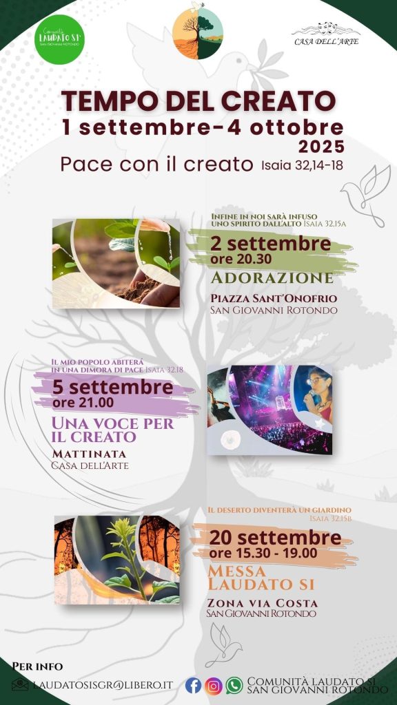 Adorazioni, momenti di preghiera e la Messa Laudato Sì accompagneranno in questo cammino comunitario a San Giovanni Rotondo e Mattinata.